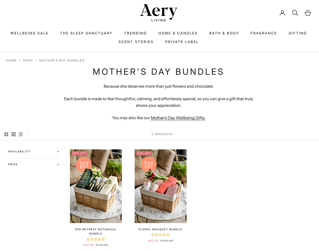 When it comes to Mother’s Day marketing, less is often more. Rather than overwhelming shoppers by promoting your entire catalogue, focus your efforts on a smaller number of products - like a bestseller, a popular gift set, or a dedicated Mother’s Day bundle - and go all in on making those shine.